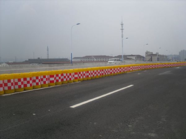 防撞桶主要設置在公路及城市道路上容易發生汽車與路中固定設施發生碰撞的部位,如:路的轉彎處,路中崗亭、收費站及高架路的進出口,停車場、小區、花園、加油站等等,起到隔離作用,防撞桶是用高彈性、高強度的改性塑料制成,當汽車與該設備碰撞時,能有效地減小沖擊力,因此,能顯著地降低車與人地損傷。 其表面貼有的反光膜,可以根據需要貼上指示標簽 。