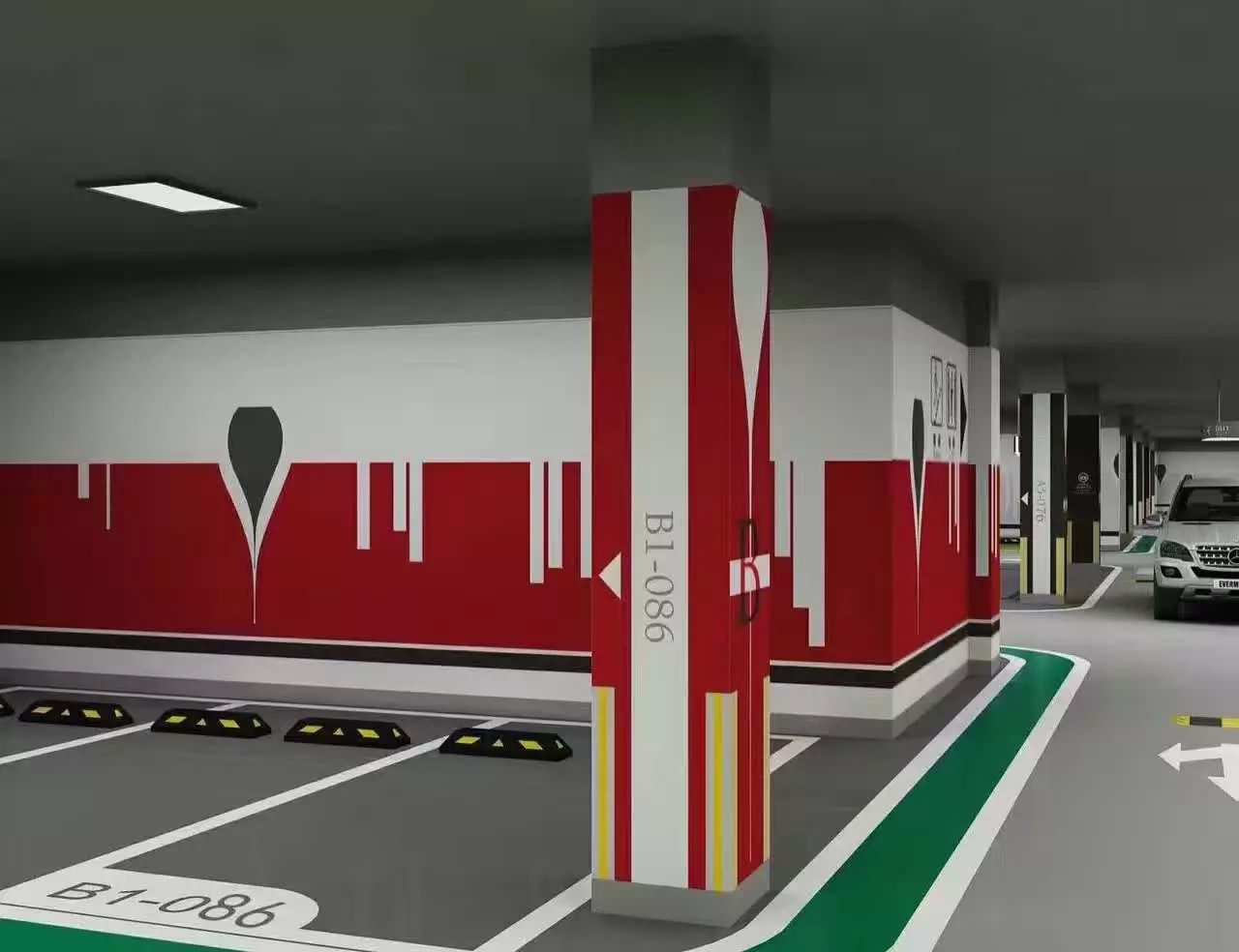 1、停車位線:規格為2500X5000mm,線寬150mm,顏色為白色;